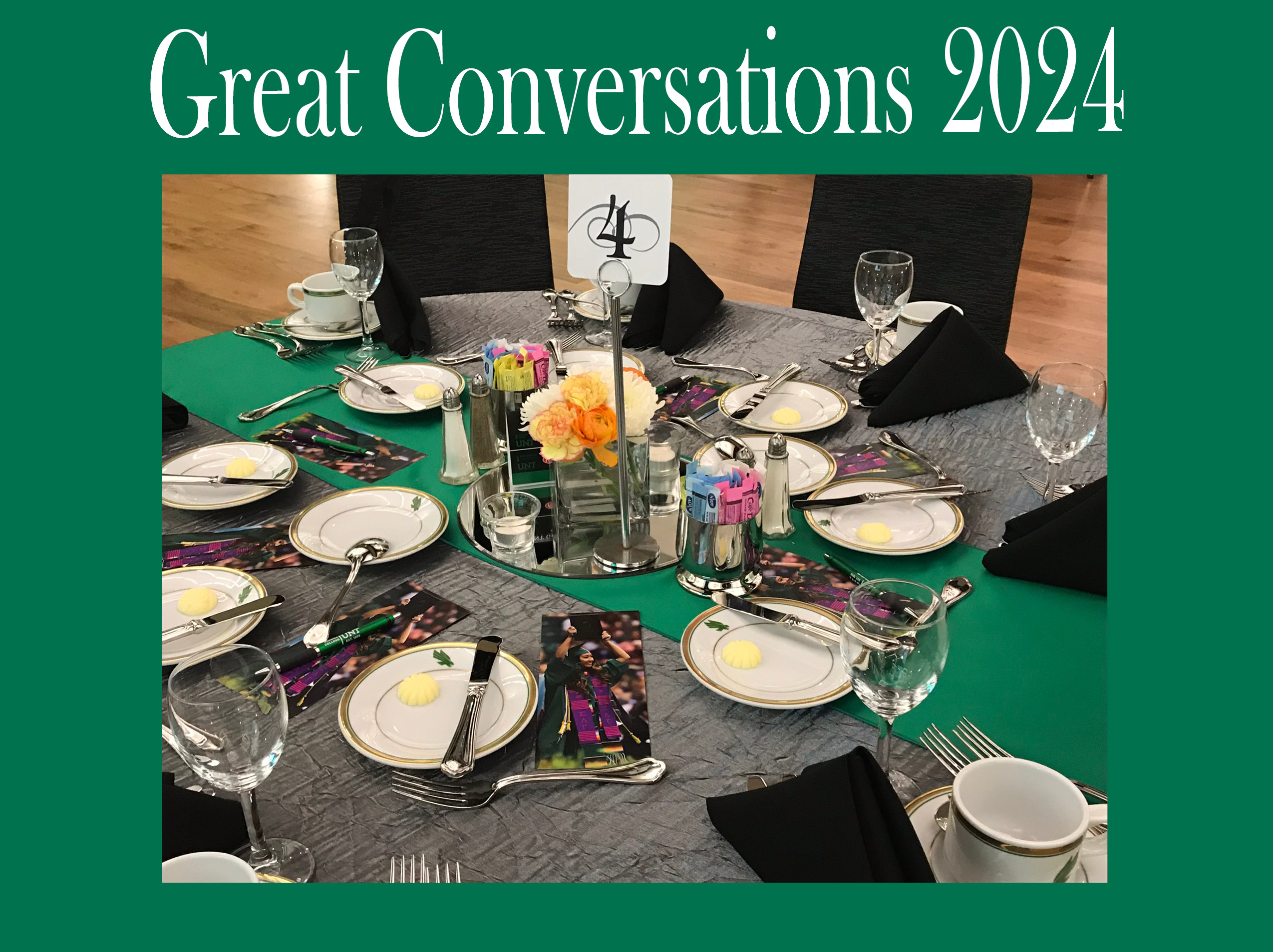 Great Conversations is a unique live event benefiting the Honors College at the University of North Texas. This engaging program brings together individuals of accomplishment and skill to facilitate conversations on important, diverse, and stimulating topics, ranging from the intellectual to the lighthearted over dinner. The event is being held in the DATCU VIP Clubroom Tuesday, February 27, 2024, Doors will open at 6:00pm. Dinner and conversation to begin at 7:00pm.